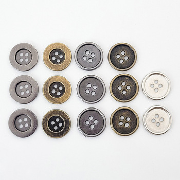 กระดุมเย็บผ้าทรงกลมแบบแบน 4 รู ชุบโลหะผสมสังกะสีแบบเป็นมิตรกับสิ่งแวดล้อม สี Gunmetal พร้อมโลโก้สั่งทำพิเศษ